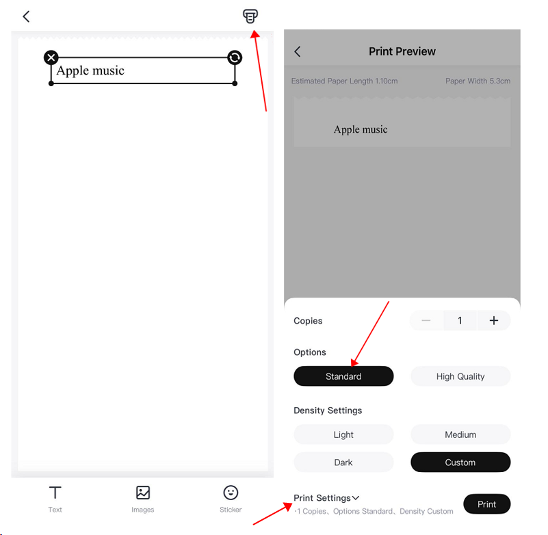Going to the "Print Settings" option and adjust the print density as needed to enhance print clarity.