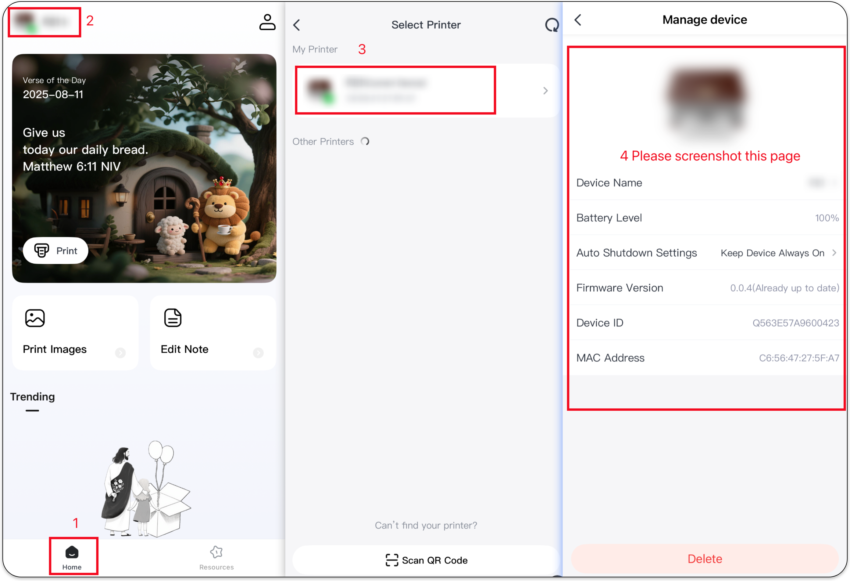 There are two ways to access the SN of the printer: Connecting to "FaithTag" app or Printing a self-test page. 1. Option1: Connecting to "FaithTag" App to access SN. Open the "FaithTag" App. Tap the printer icon in the upper left corner to search for ...
